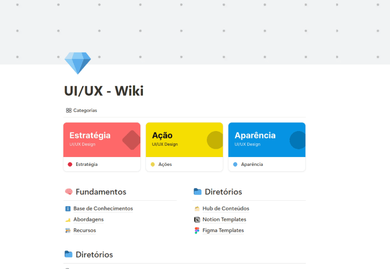 Uma imersão completa em Product Design, organizada em uma só página do Notion. O arquivo contará com resumos pessoais, templates prontos, seleção de vídeos essenciais, plugins e outros recursos que fazem a diferença em nosso trabalho.